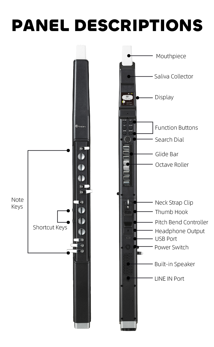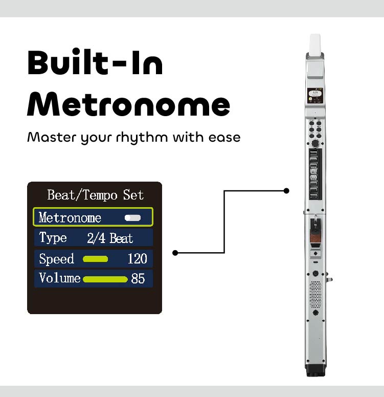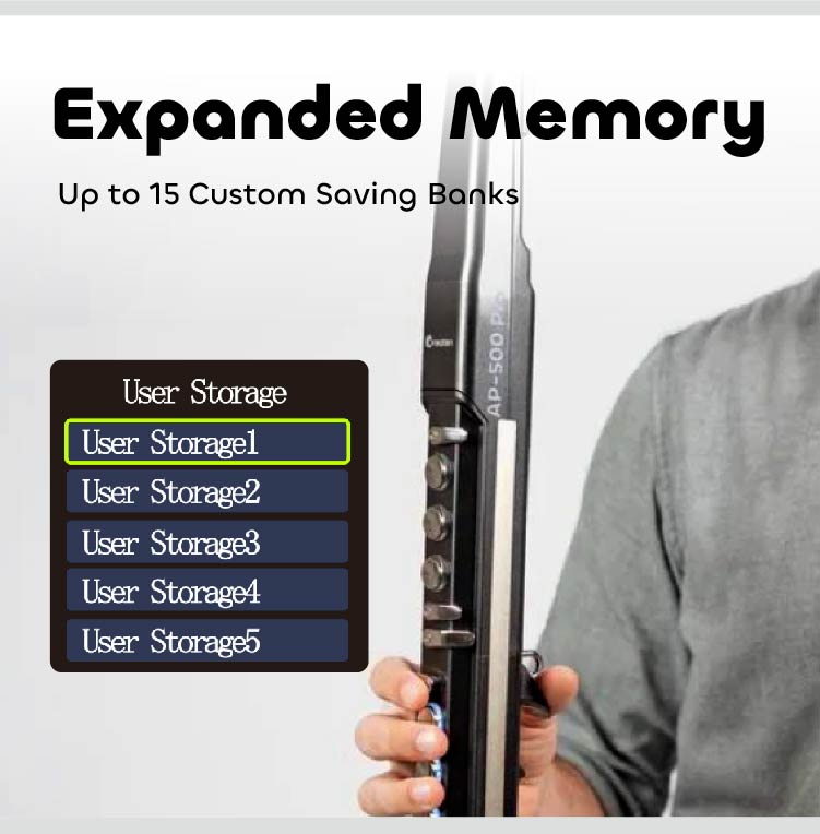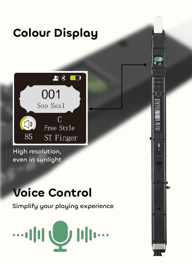 A less rubbery mouthpiece option would be good for long sessions where I get lazy and bend it too far, blocking the airflow. Perhaps separate options in reverb and chorus for headphones and speakers might be a good improvement: I find I want less with headphones and more when using the on-board speaker. Maybe an option to change the font in the display to something more modern might be a good idea; SimSun is rather dated. I'm a bit terrified that if I ever play live and someone sees which model this is they will shout out the name of an instrument and the voice control will make the change immediately! But these are very small critiques; overall, the AP 500 Pro is a first-rate wind-synth, fun to play, lots of features and options, looks great and feels comfortable. It has earned a new box-top stand beside my workstation so I can play a few notes whenever I want to take a break from other work. Bravo, Greaten!
