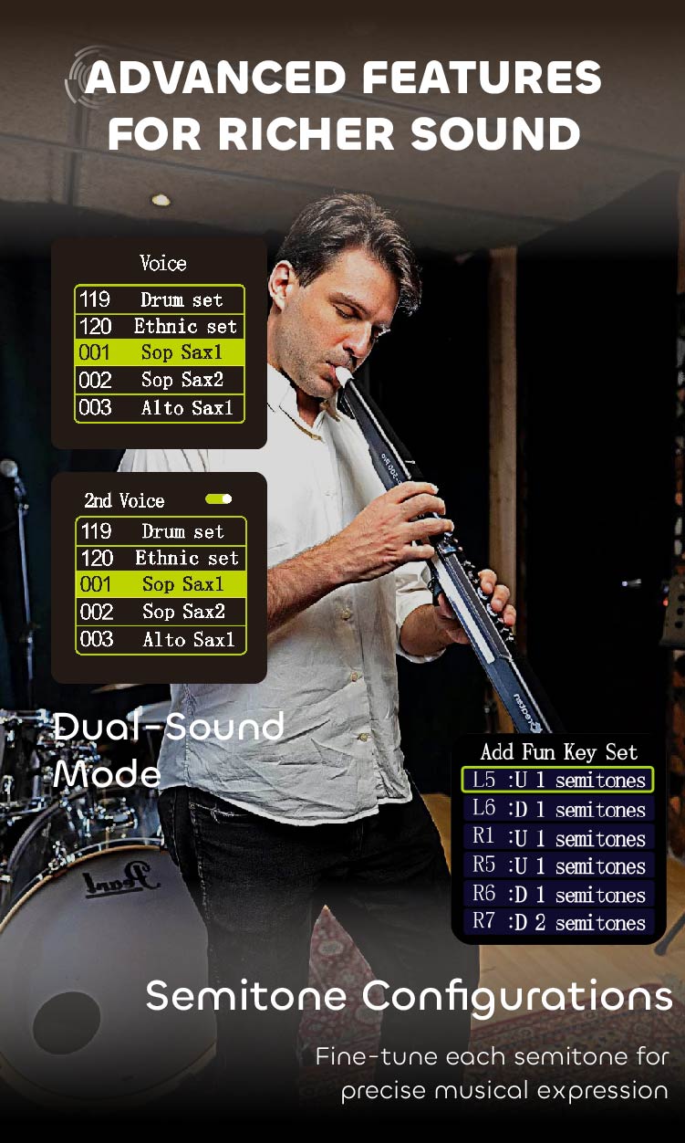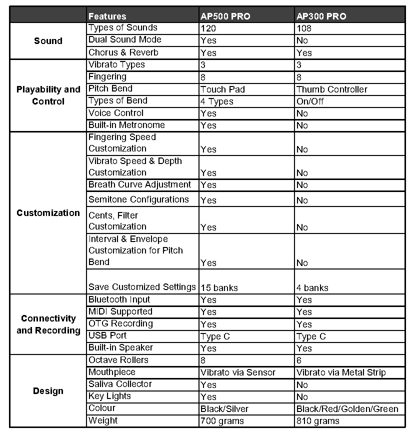 So much to like about the AP500 Pro. Smaller octave rollers than my AKAI EWI Solo make a huge difference in difficult spots. Playing into headphones with an accompaniment program coming into the instrument live via Bluetooth is great and smooth, easy to mix. The 118 sounds (drum patches not included) that you can mix to play two instruments in unison, combined with a 1-10 mixer on the second instrument, makes over a quarter MILLION possible timbres possible. AP 500 players will have great fun combining Western and Asian instruments, or even plucked or synth sounds, to find unique and exciting new sounds. Delivery to the Vancouver area was about ten days over the Christmas week, with a bit of an importing fee, but still overall the least expensive wind-synth in my collection.